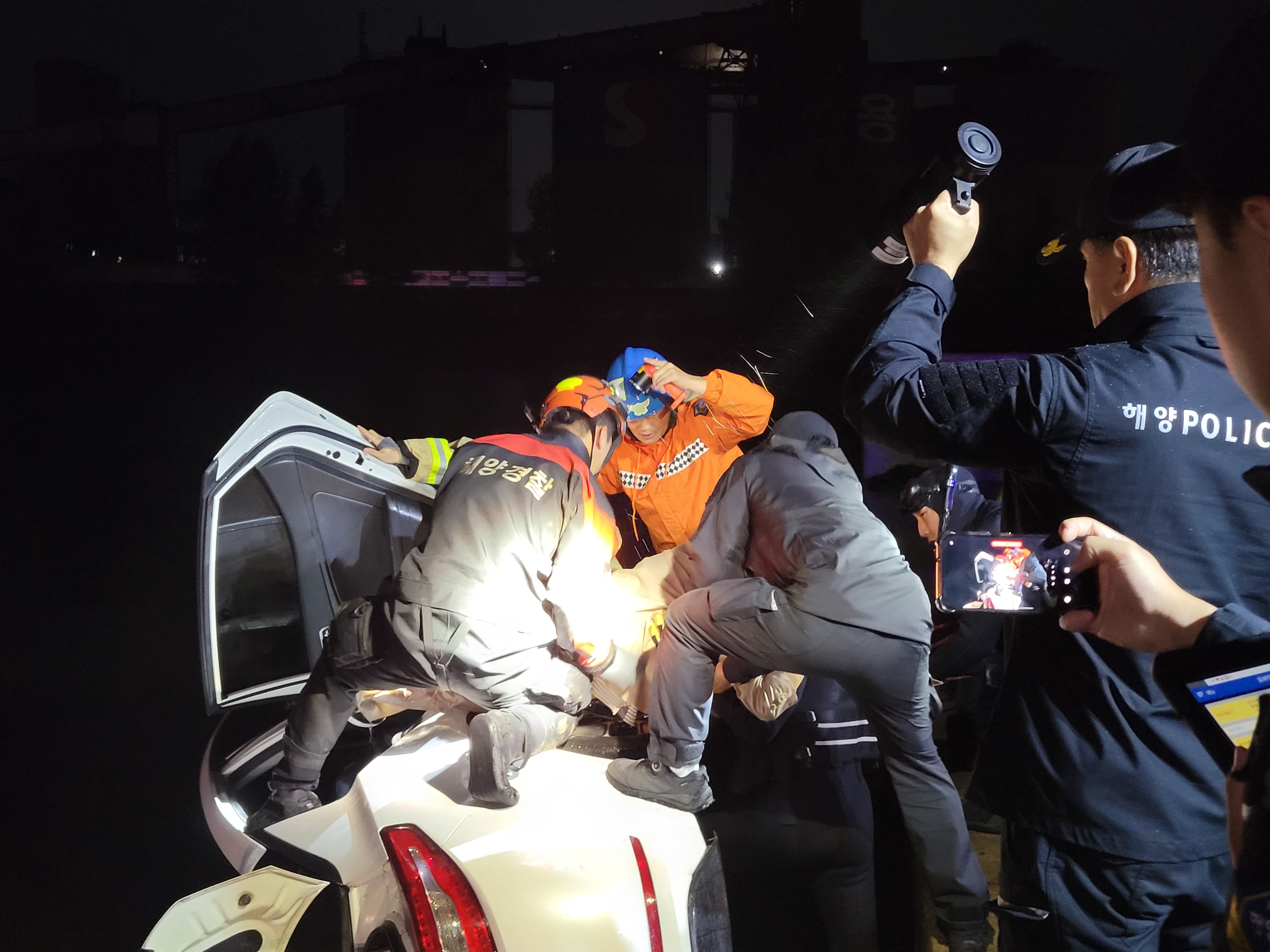 250921 동해해경·소방, 해상 추락 차량서 4명 신속 구조