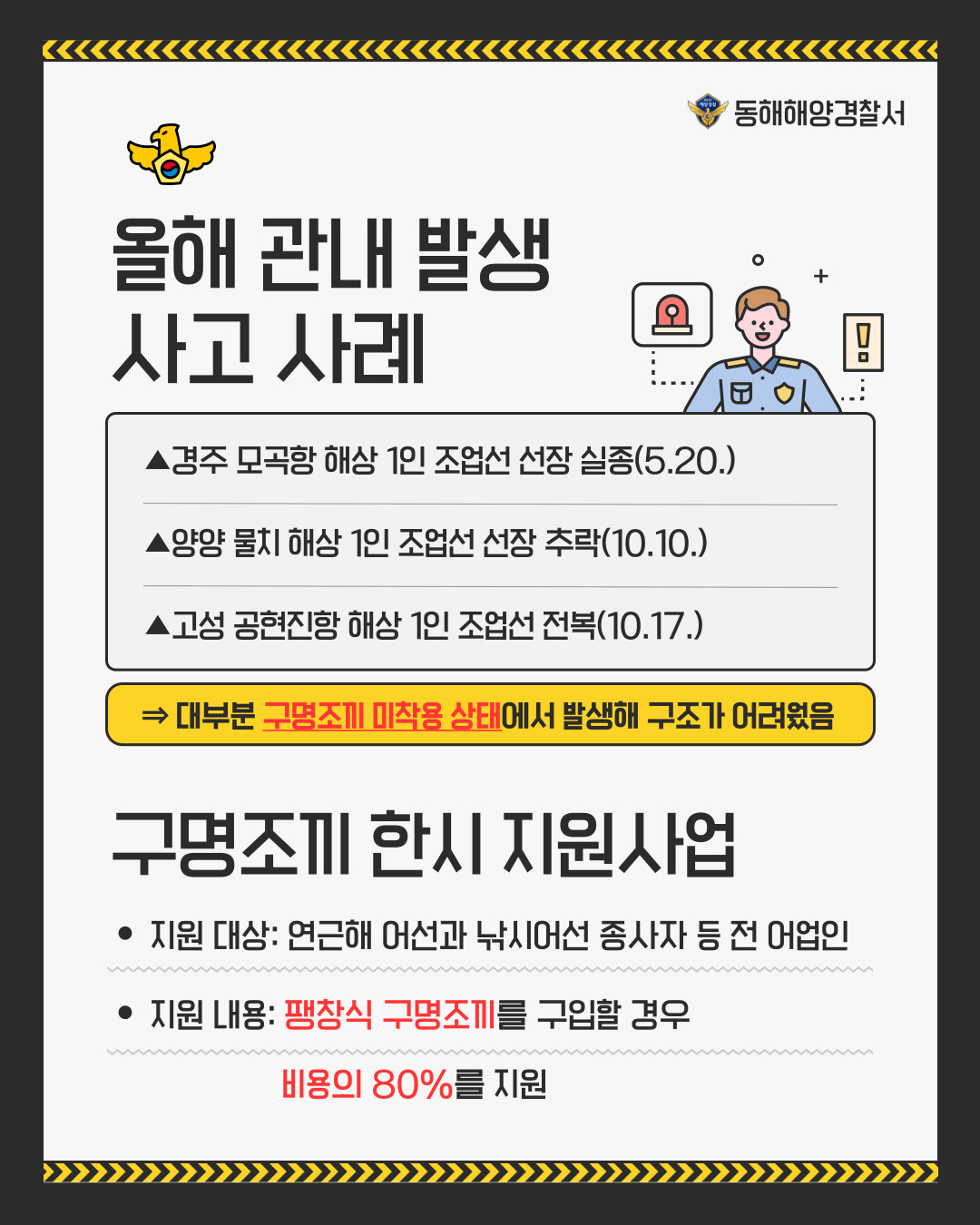 251030 승선원 2인 이하 어선, 11월부터 구명조끼 상시 착용 의무화