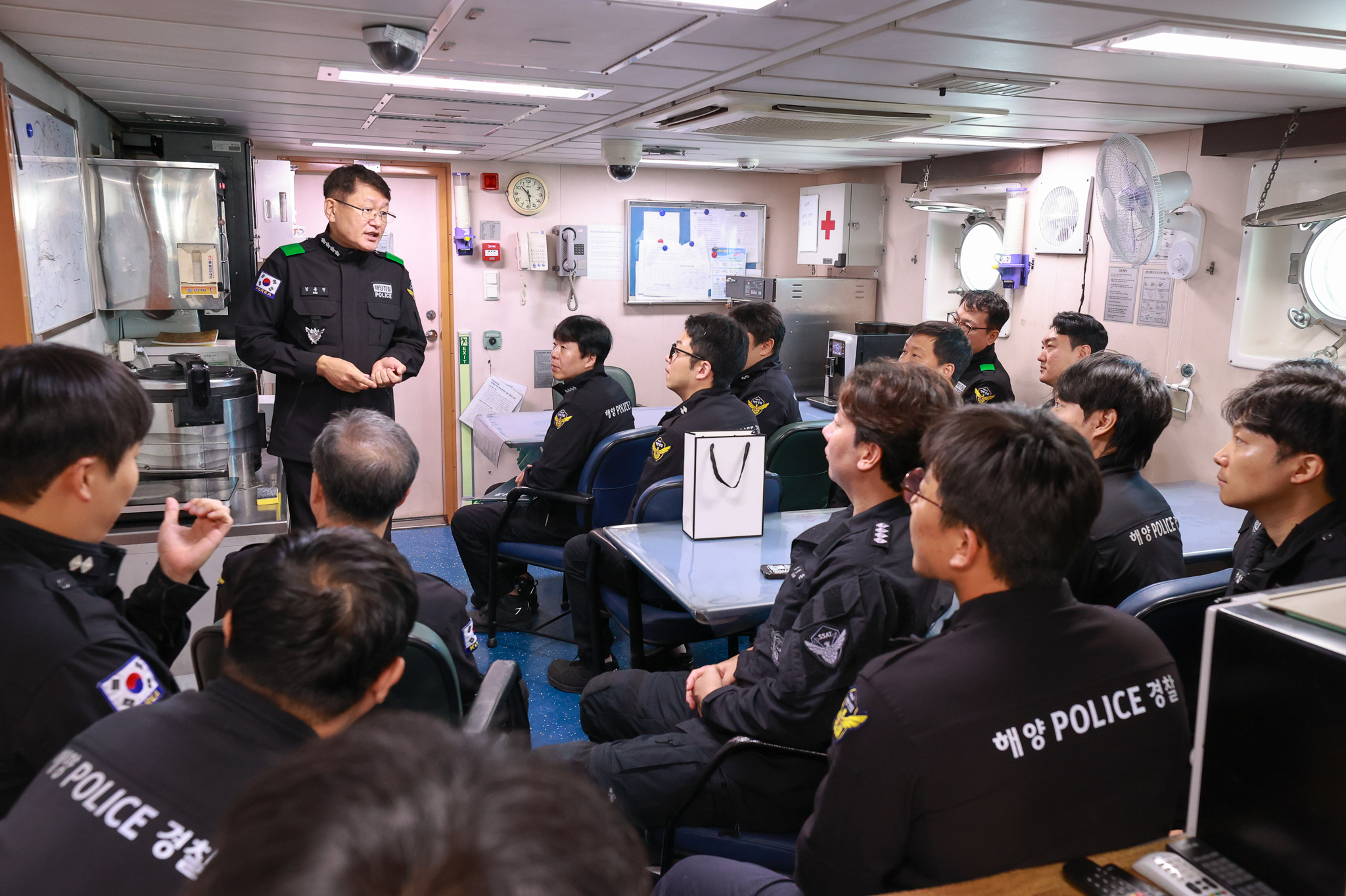 250902_김용진 해양경찰청장은 가을철 성어기 대비 현장점검을 위해 경비함정을 방문, 승조원들과 대화시간을 갖고 있다..jpg