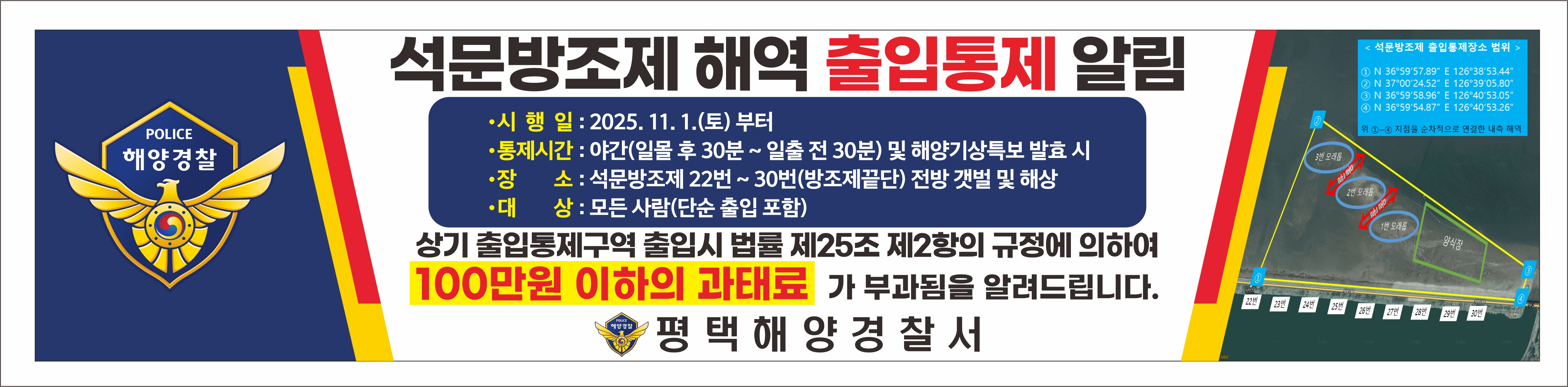 석문방조제 야간 출입통제장소 지정