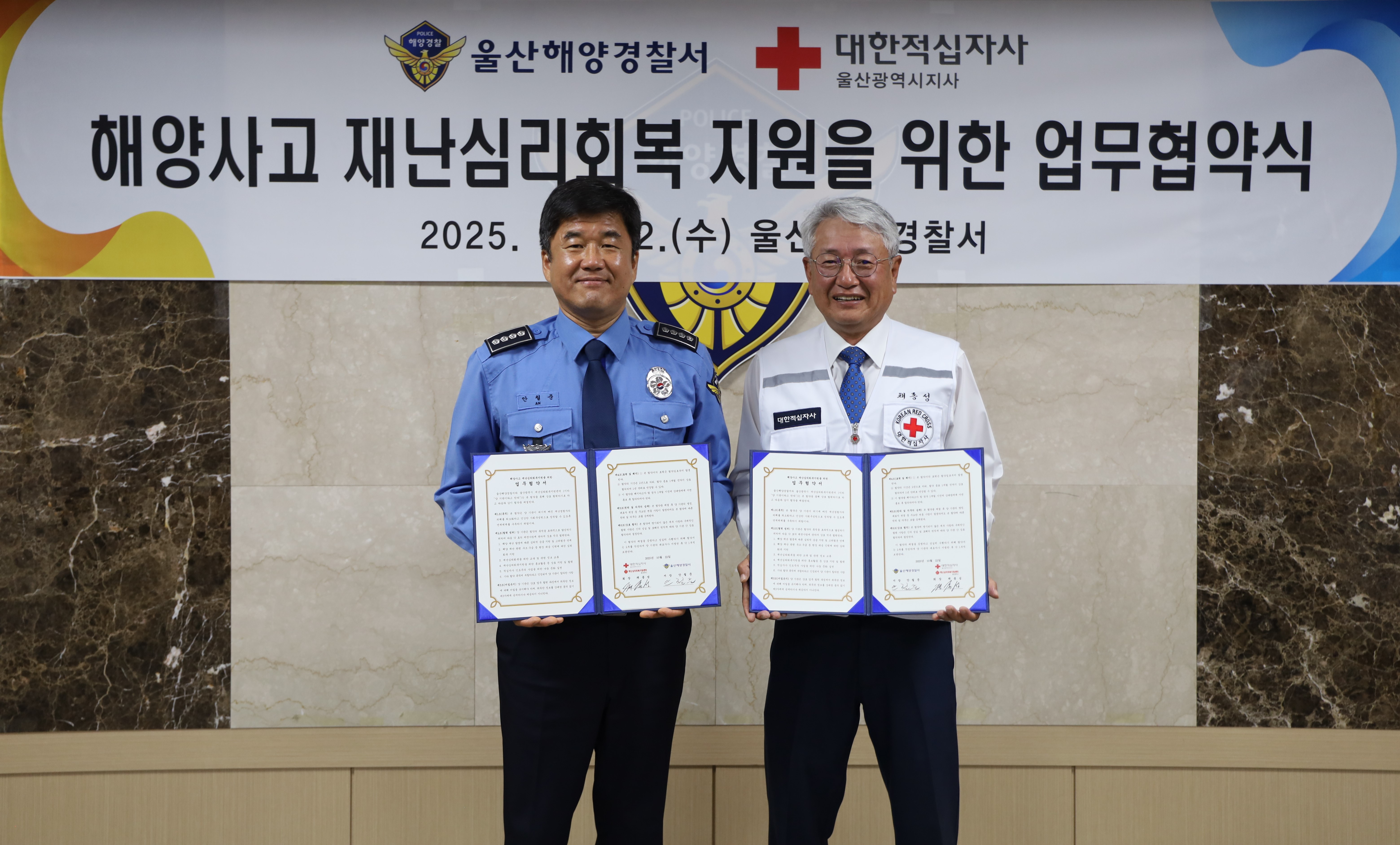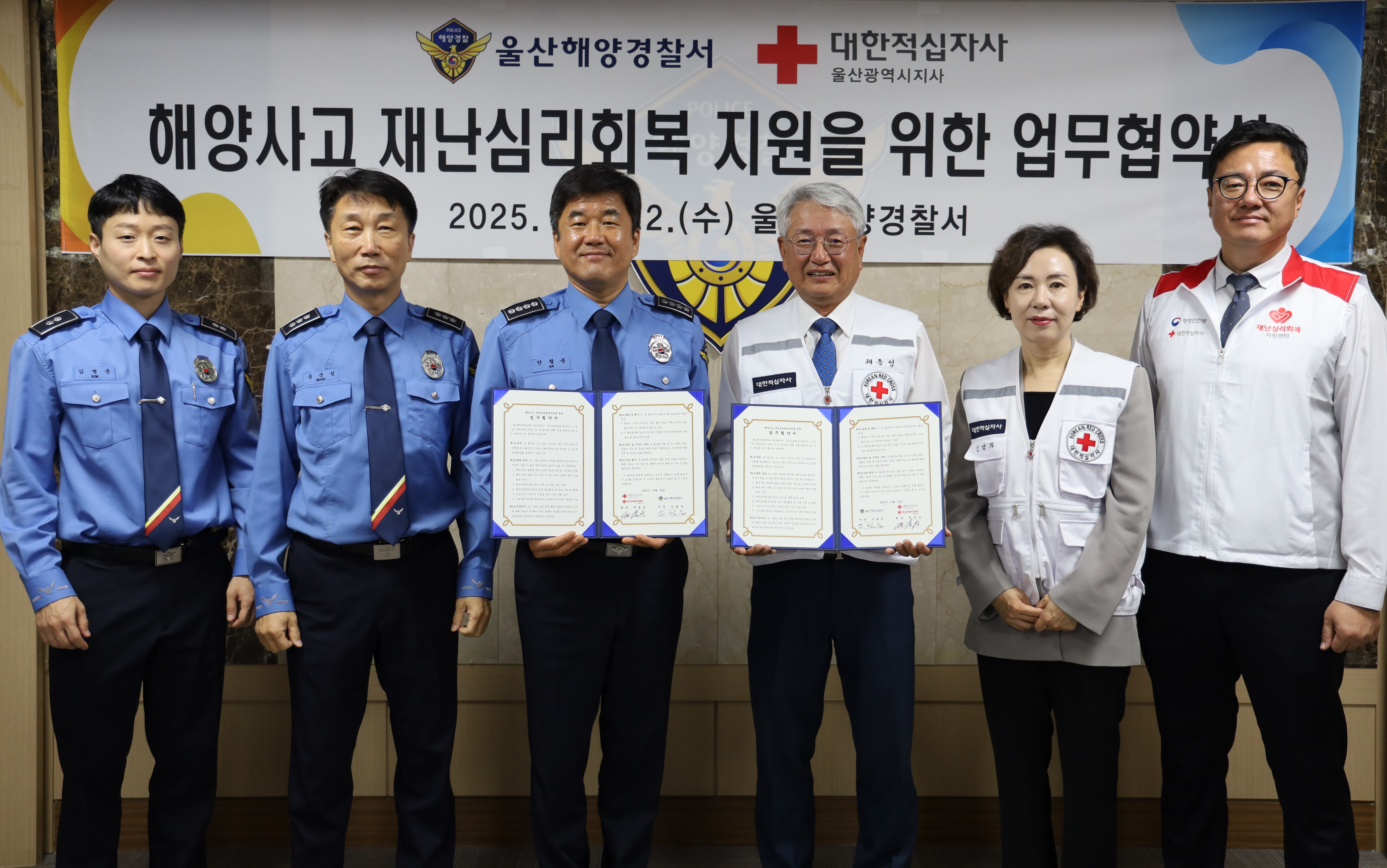 "출처표시+상업적 이용금지+변경금지"해양경찰청이(가) 창작한 251022 대한적십자사 업무협약식 저작물은 공공누리 "출처표시+상업적 이용금지+변경금지" 조건에 따라 이용할 수 있습니다.