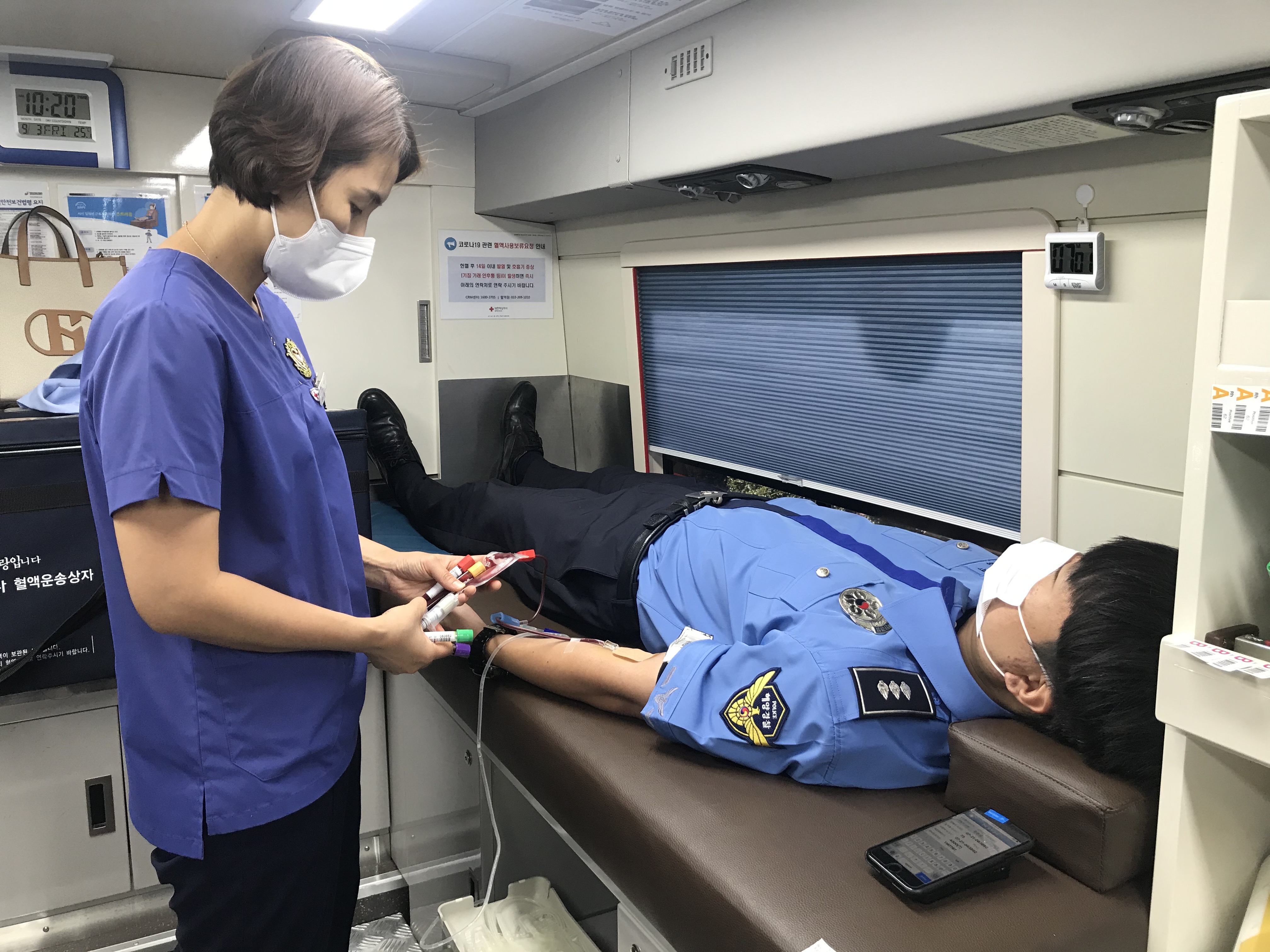 주우석 경장이 가장 먼저 헌혈을 하고 있다..jpg