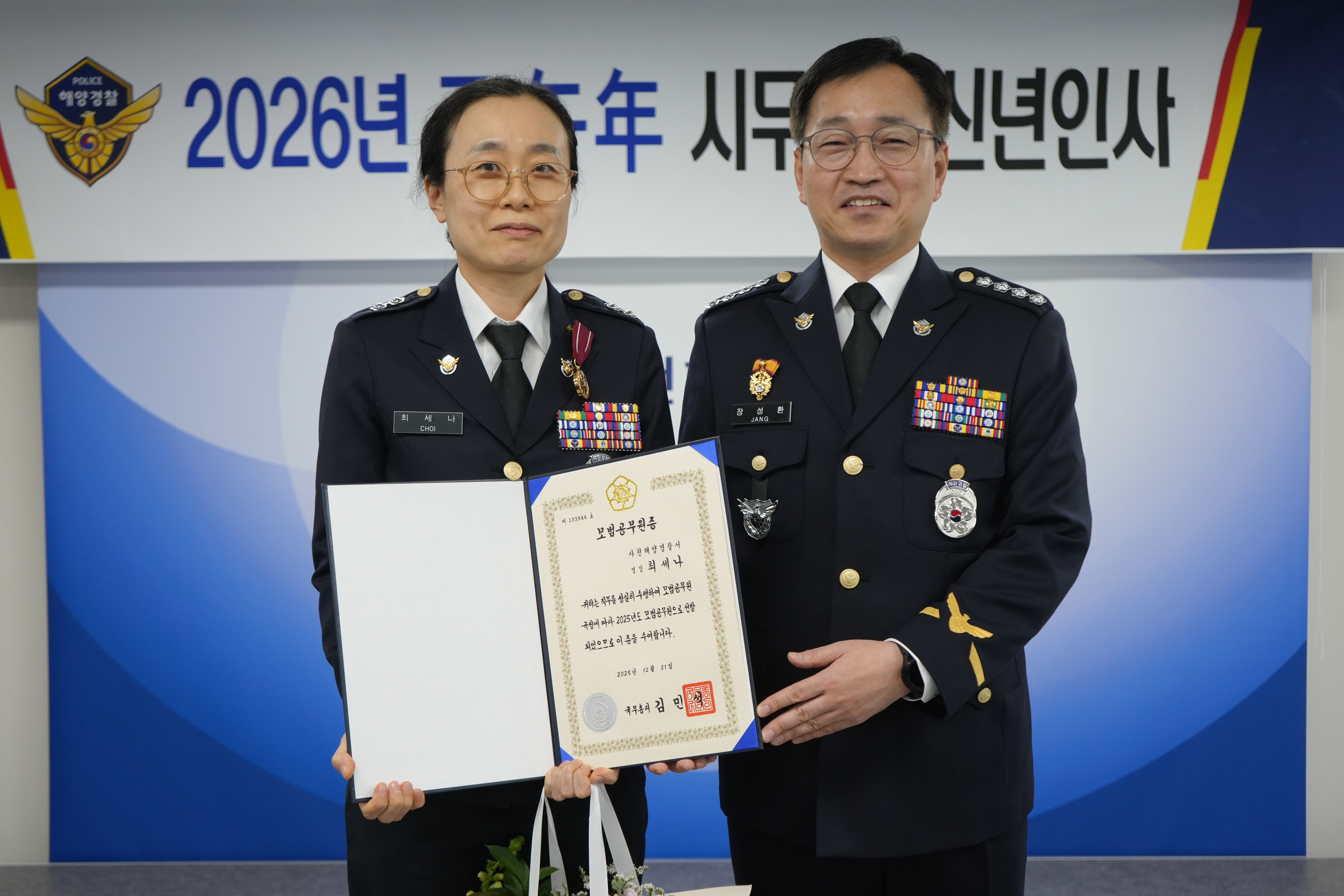 해양경찰청이(가) 창작한 (260102) 2026년 시무식 및 충혼탑 참배 저작물은 공공누리 "OPEN공공누리 : 공공저작물 자유이용허락 마크(출처표시+상업적 이용금지+변경금지)" 조건에 따라 이용할 수 있습니다.